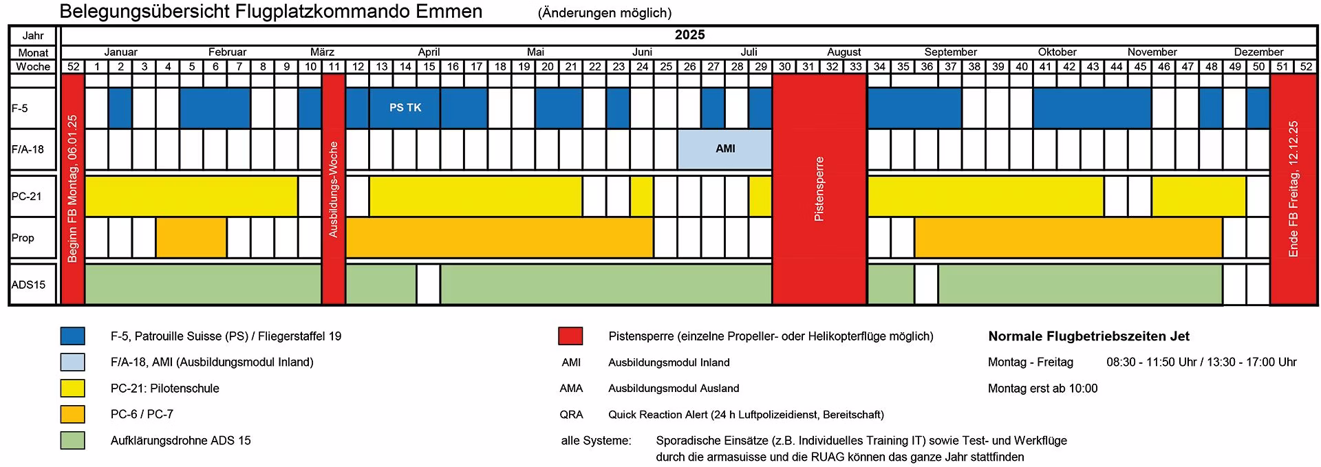 Verbände KLUG – Koalition Luftverkehr Umwelt und Gesundheit Schutzverband Alpenregion (Meiringen) Dachverband Zürich Schutzverband Zürich Schutzverband Altenrhein Schutzverband Basel Mülhausen Schutzverband Bern-Belp Medien Neue LZ Regionaljournal Zentralschweiz Zentral+ Rundschaubeitrag zum F-35 Lärm Flugdaten Belegungsplan Flugplatz Emmen 2025 Erhöhter Flugbetrieb am Donnerstag, 12.06.2025 über Emmen